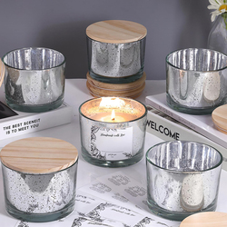 Frascos de velas de vidrio plateado con tapa hermética de bambú para hacer velas, contenedor de velas vacías para decoración del hogar, boda, Navidad