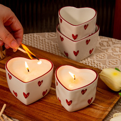 प्यारा दिल के आकार का सिरेमिक खाली मोमबत्ती जार, उपहार अनुकूलन प्यार सुगंधित मोमबत्ती जार कस्टम लोगो