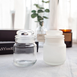 फ़ैक्टरी हॉट सेलिंग मोमबत्ती कंटेनर उच्च गुणवत्ता वाले फ्रॉस्टेड साफ़ खाली ग्लास मोमबत्ती जार ग्लास ढक्कन के साथ मोमबत्ती धारक