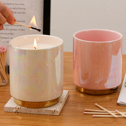 Groothandel Aangepaste Logo Keramische Kaars Cup Gegalvaniseerde Parel Glazuur Porselein Kaars Container Huis Desktop Decoratie