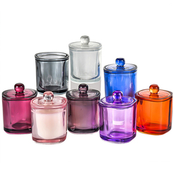 Groothandel Lege Gekleurde Vierkante En Ronde Kaars Container Luxe Glazen Kaars Pot Met Deksel Voor Kaars Maken