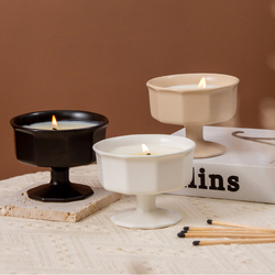 Toptan renkli yüksek ayak seramik mum kavanoz boş Nordic mum kabı